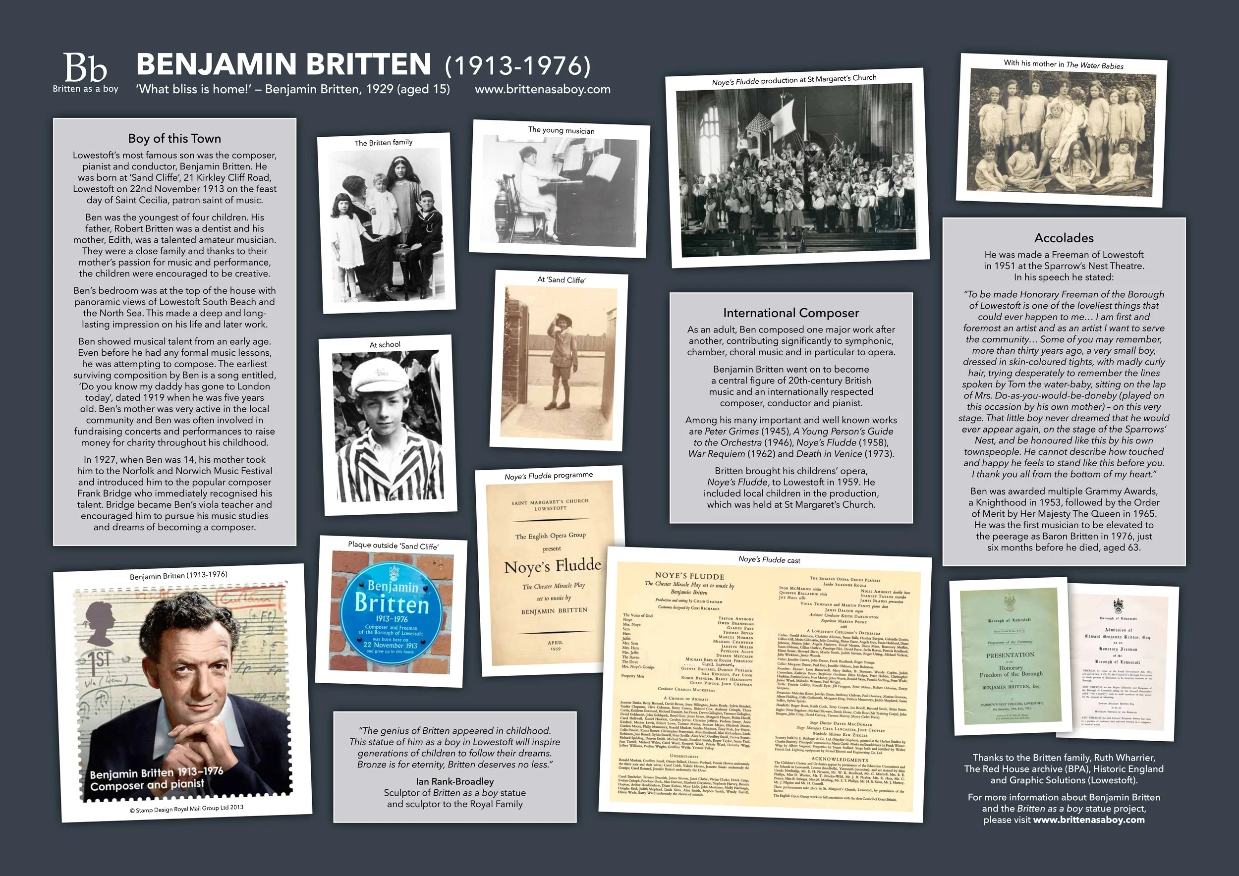 It is at this formative age that we have chosen to depict Britten, to inspire other local children to follow their dreams.