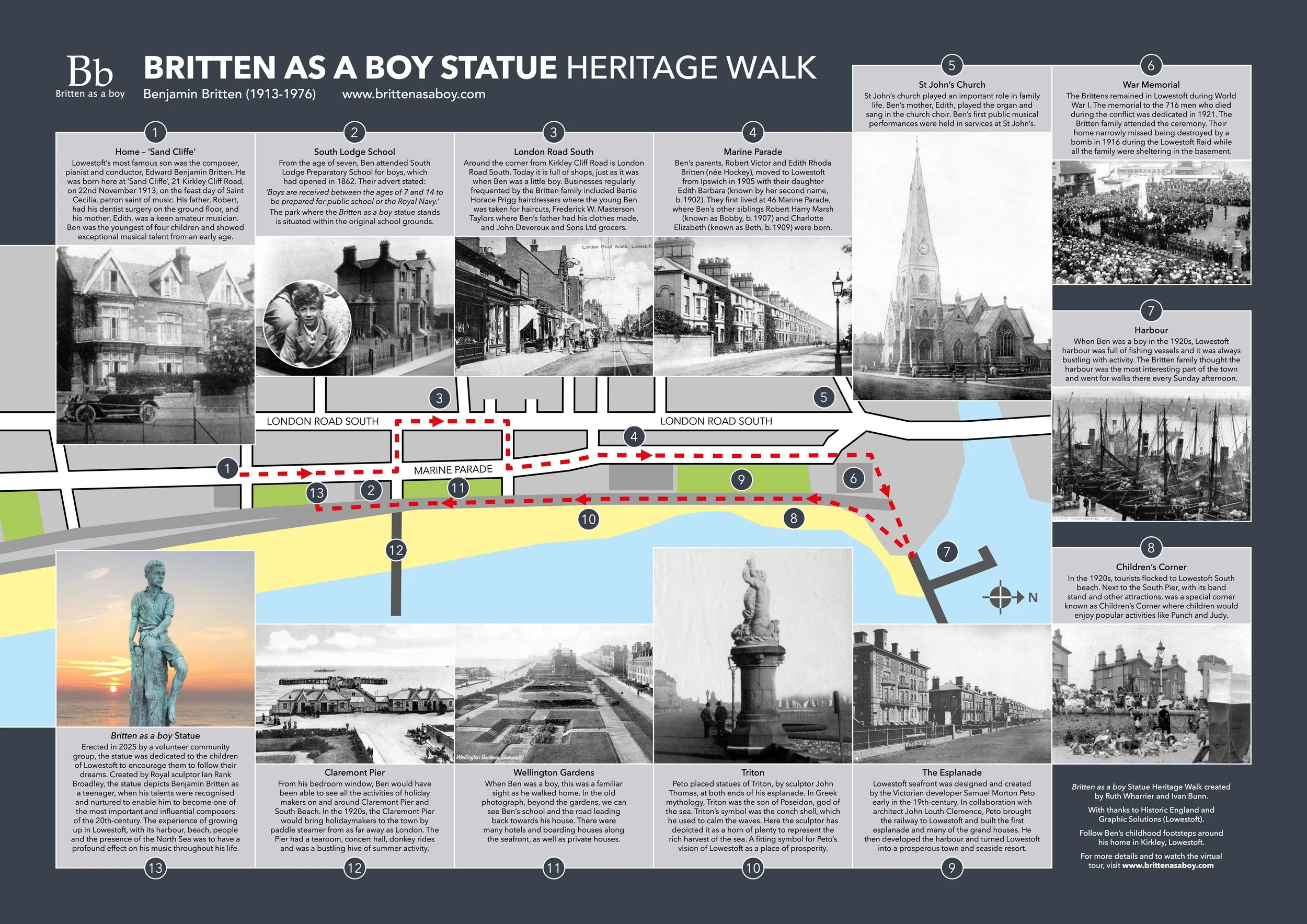 Two information boards will focus on Britten’s childhood in Lowestoft and his later success as a composer.